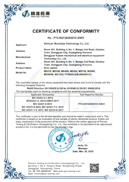 Standard:RoHS Number:PTC26012820201C-EN01 Issue Date:2026-03-20 Issued By:Precise Testing & Certification (Guangdong) Co., Ltd. |